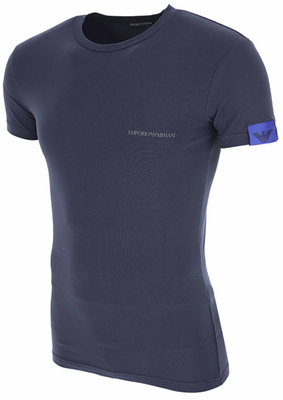T-Shirt - Girocollo - Maniche Corte • Stampa Logo Emporio Armani sul Petto - Fettuccia con Aquilotto cucito sulla manica - Cotone Elasticizzato -